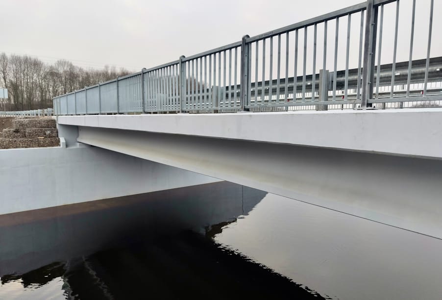 Также на объекте обустроены съезды и подходы протяженностью 336 пог. м, установлены водоотводные лотки, защитные барьерные и перильные ограждения, укреплены откосы. На проезжей части уложили два слоя асфальтобетонного покрытия, нанесли разметку.
